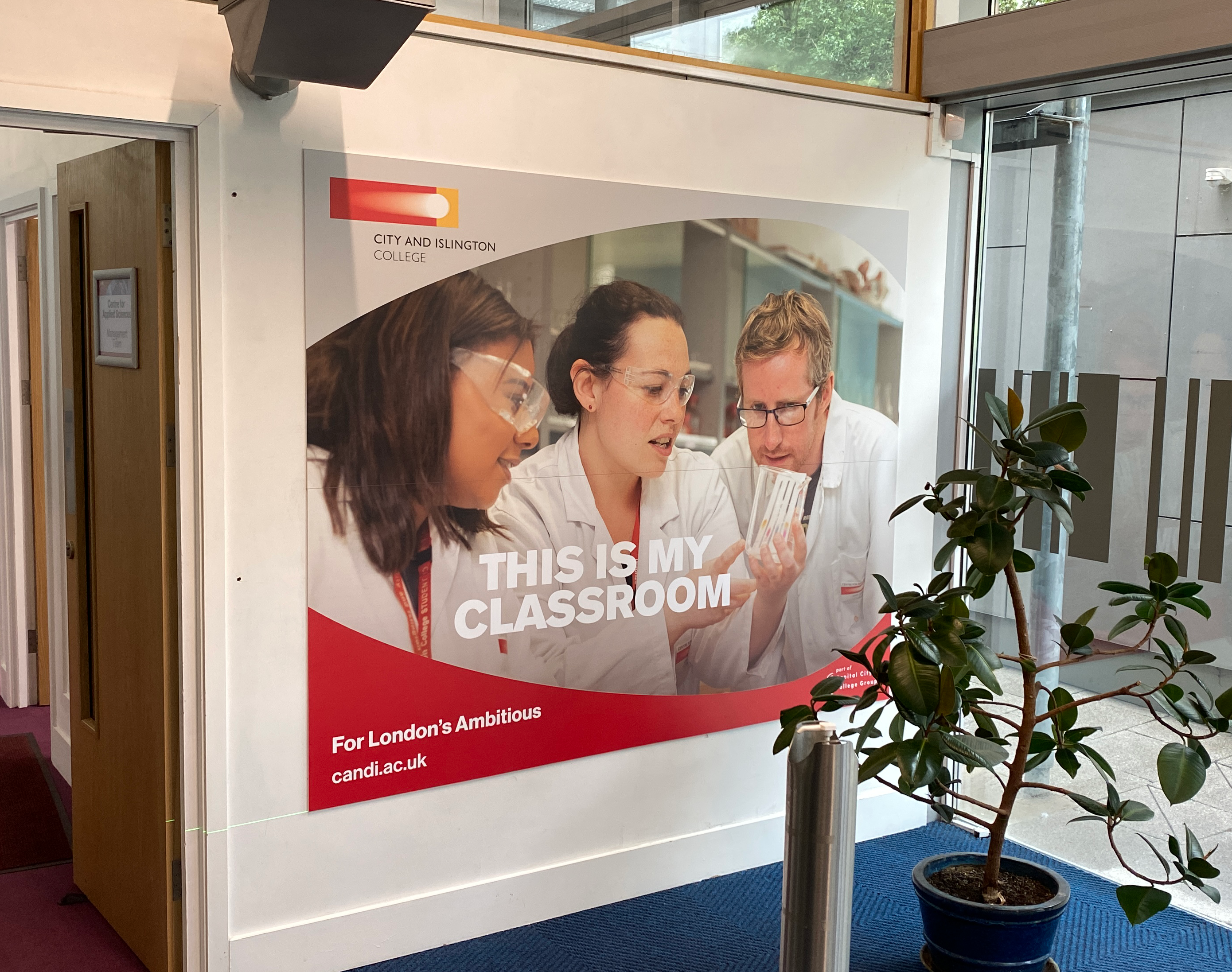 Transform your learning environment with a range of custom wall graphics, from full wall wraps to cut lettering and logos, designed to inspire.